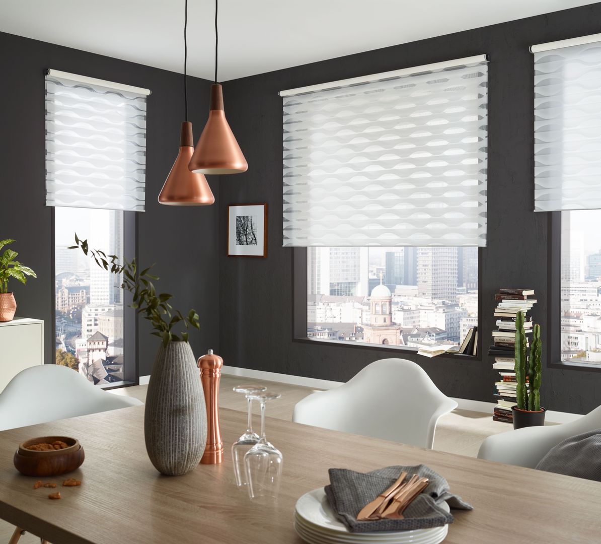 Das Rollo nimmt daher im Interior Design genauso eine wichtige Funktion ein wie es mit einer breiten Palette an Bedienungs- und Montagemöglichkeiten sein Funktionsspektrum seit anno dazumal erweitert hat. Varianten in unterschiedlicher Transparenz sowie innovative Gewebearten bieten einen großen Reigen an Interpretationsmöglichkeiten. Abdunkelung nach Wunsch schaffen dabei unterschiedlichste Lichtdurchlässigkeitsvariationen von durchsichtig bis blickdicht. Spezialgewebe unterstreichen durch ihre Oberflächenstruktur vor allem im Objektbereich ein stylishes Flair. Elektrisch Antriebe und automatische Steuerungen begeistern Hightech-Freaks.