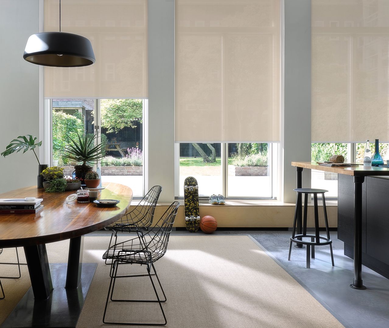Klare Linien, ein reduziertes Design und eine leichte Bedienung machen das Rollo zum Universalgenie, das sich an jegliche Raumsituationen optimal anpasst. Schließlich ist es als Innenbeschattung sowohl für rechteckige Standardfenster als auch für ganze Glasfronten geeignet.