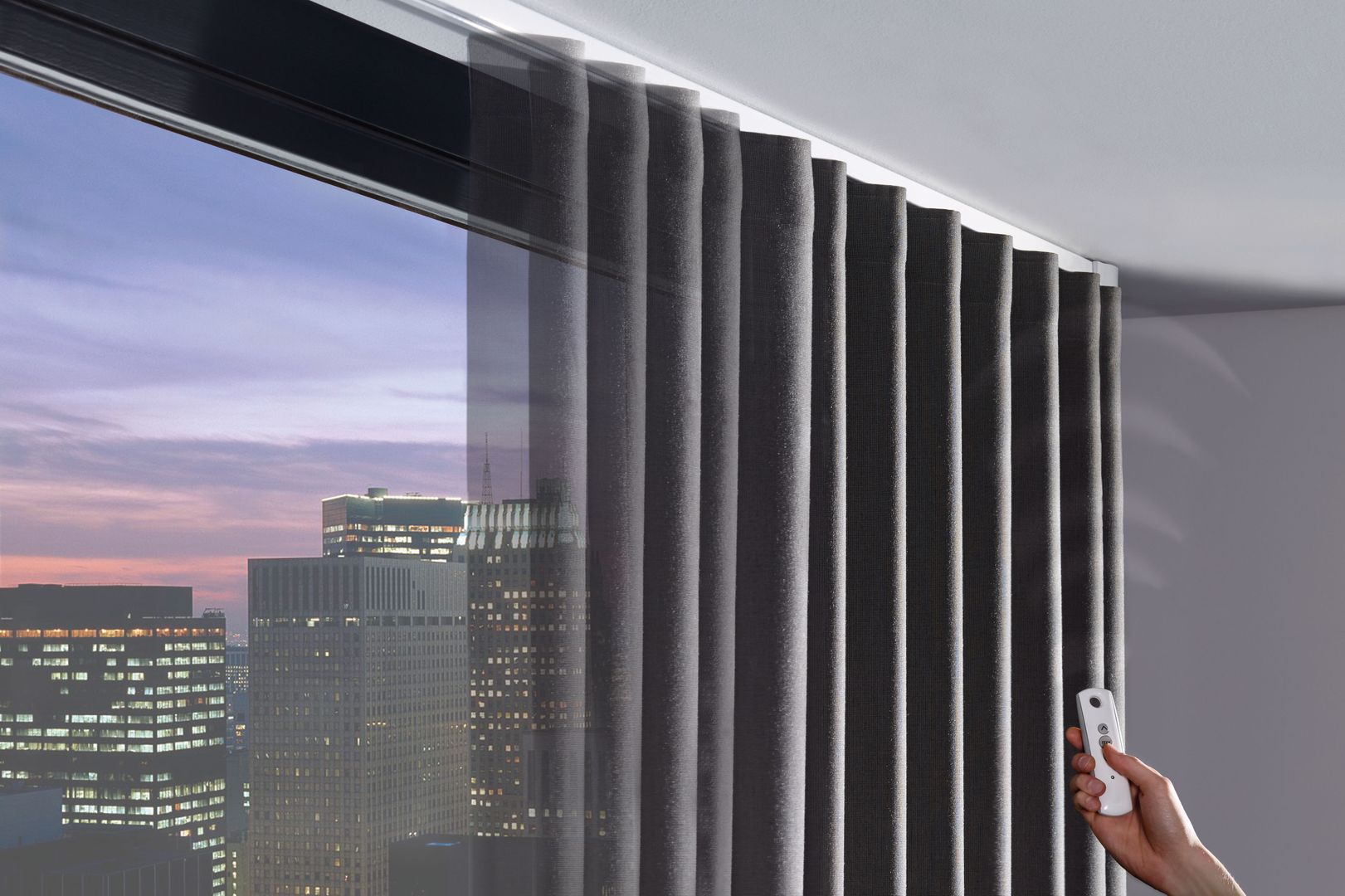 Sie haben eine besonders große und schwere Vorhanganlage in Planung? Dann empfiehlt sich die Variante per Knopfdruck. Auch bekannt als elektrische Vorhänge, sind motorisierte Versionen von Rundstangengarnituren bei schweren Stoffen und großen Vorhanganlagen immer mehr im Vormarsch. Per Funkfernbedienung lassen sich sehr einfach bedienen.